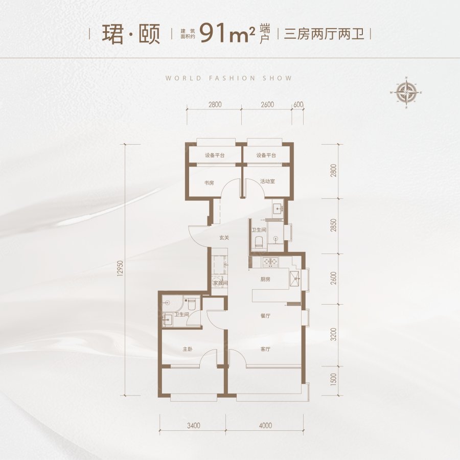 3室2廳2衛(wèi) 91m2