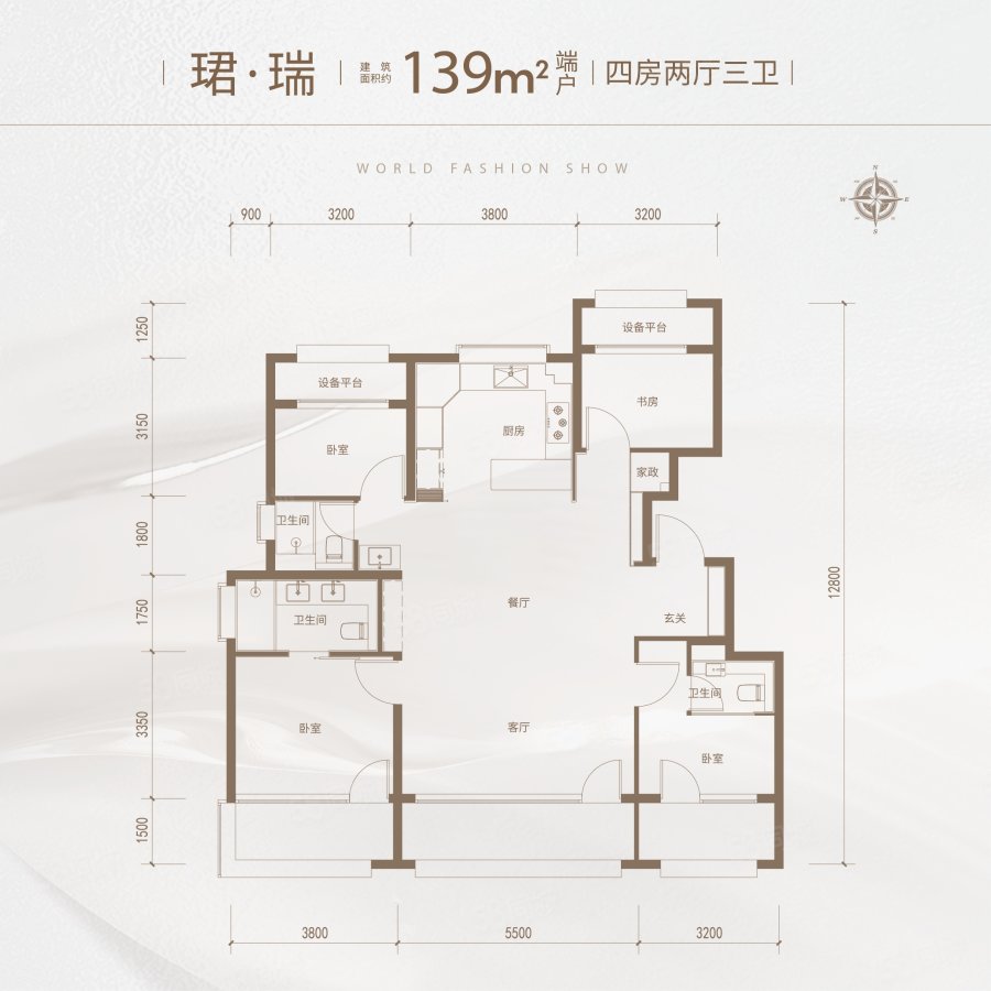 4室2廳3衛(wèi) 139m2