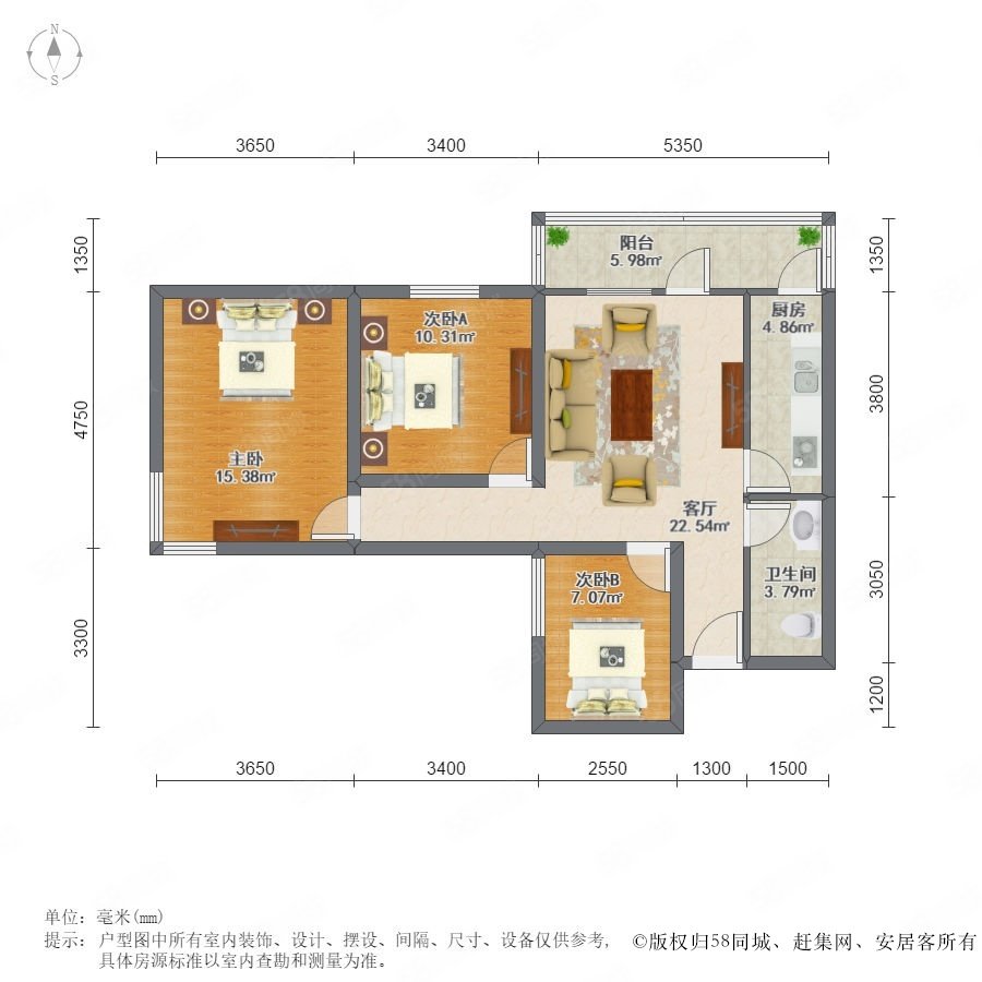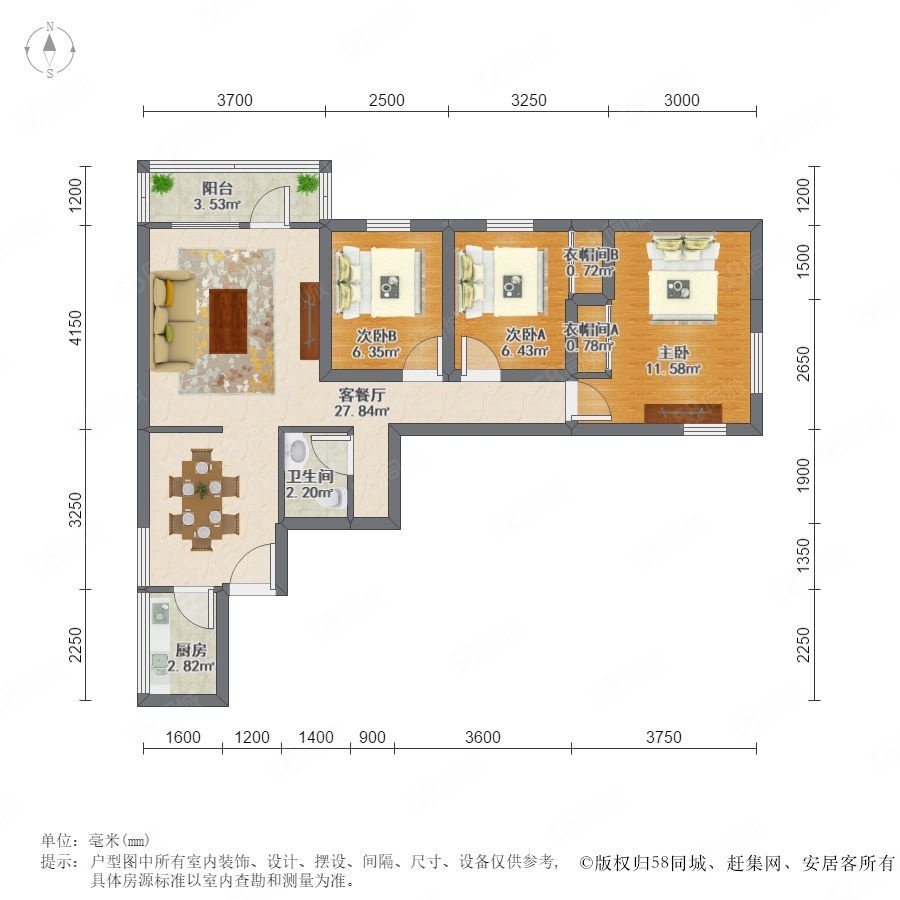 3室2廳1衛(wèi) 94m2
