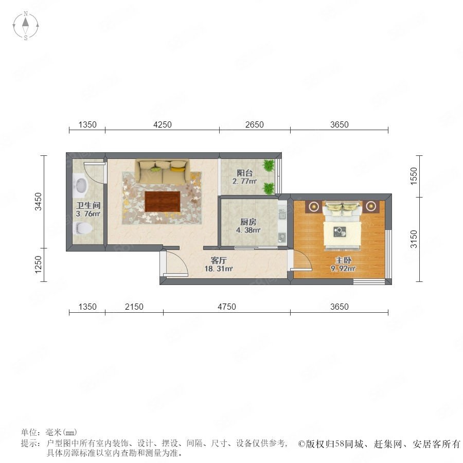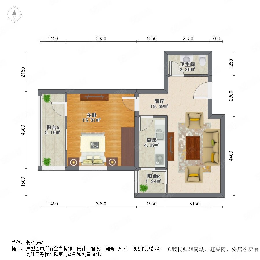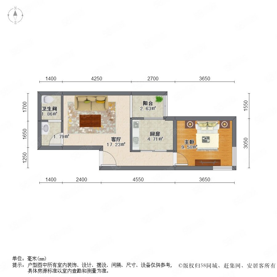 1室1廳1衛(wèi) 63m2