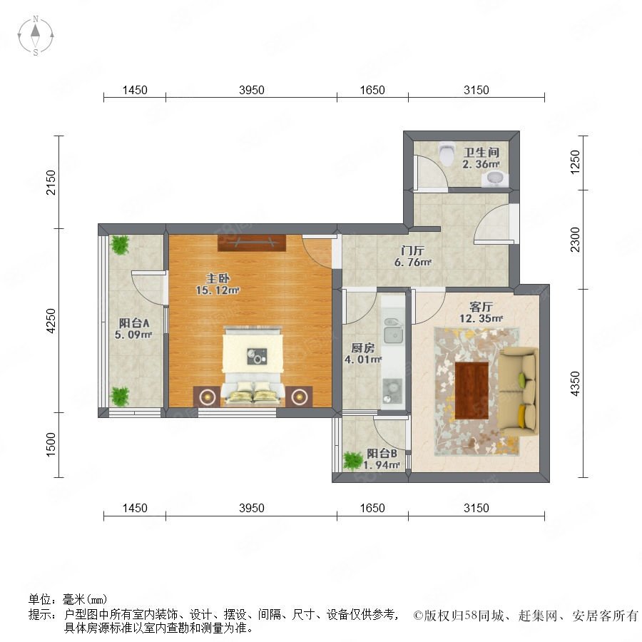 1室1廳1衛(wèi) 48m2